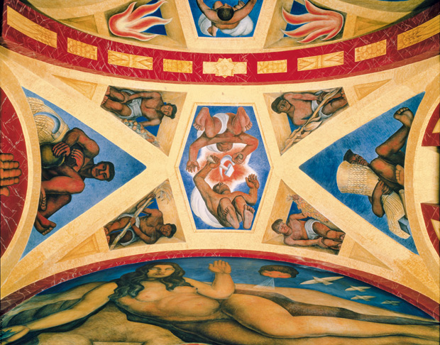 This fresco is laconic and quite severe: its central part shows the defeated figures of three rebels. Their bodies are still strong and muscular, but the postures already tell about the tragedy of the defeat. “Emotions to the max” is Orozco’s creative slogan.